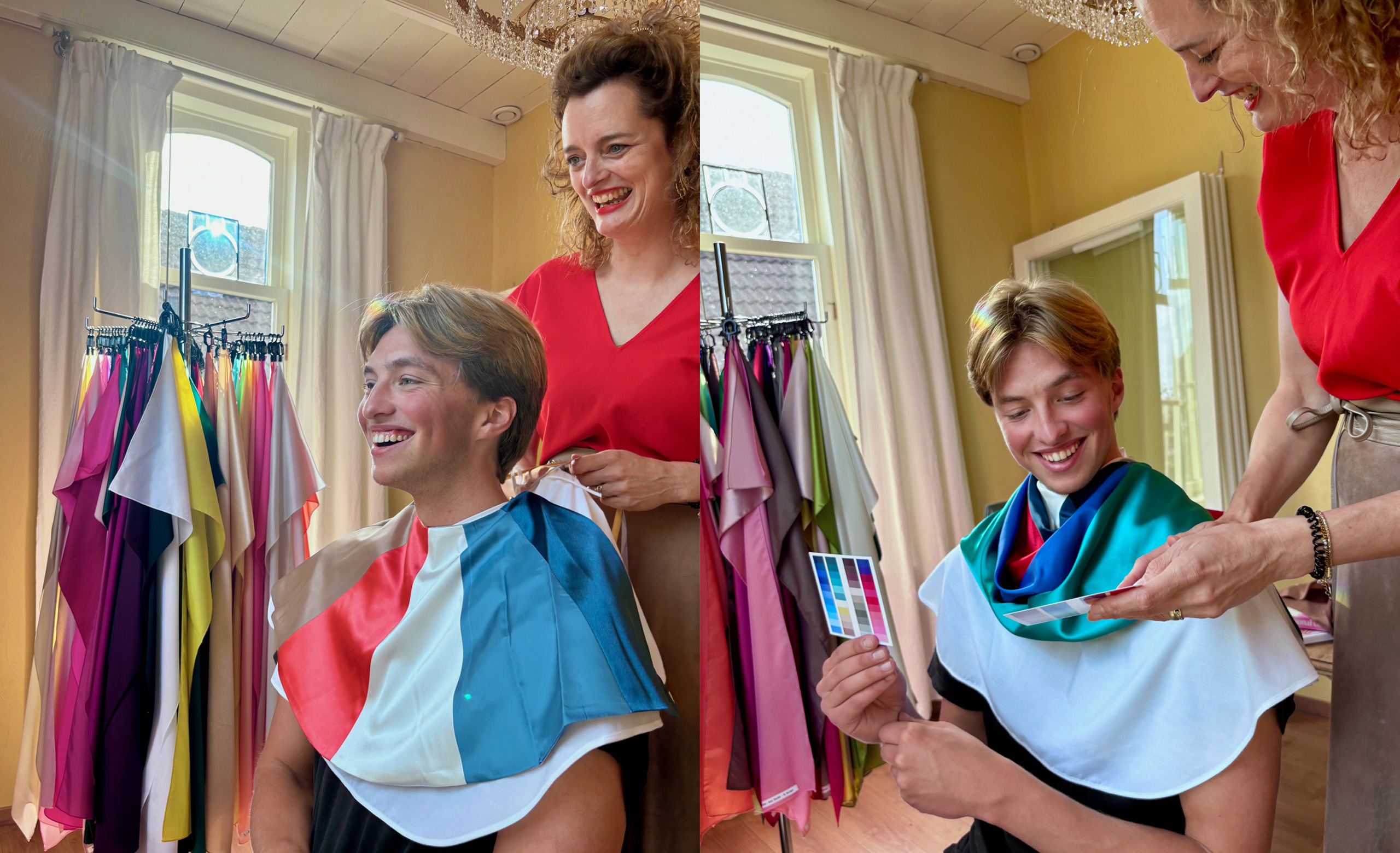 Vervolgens ontdekken we met een kleuranalyse samen welke kleuren jou versterken en laten stralen. Je neemt plaats voor een spiegel en ik leg diverse kleurdoeken bij je om. Vervolgens kijk ik hoe de reflectie van de kleurdoeken reageert op de melanine die van nature in jouw huid, haar en ogen aanwezig is. De ene kleur laat je stralen, de ander trekt alle levendigheid uit je gezicht. Met een zorgvuldige analyse bepaal ik wel kleurtype je bent. Daarna weet je of koele of warme kleuren je beter staan. En of je beter donkere, lichte, contrastrijke, gedempte of heldere kleding kunt kiezen. Ik werk met een systeem van 17 kleurtypes dat speciaal voor de Nederlandse markt is ontwikkeld. Dus je krijgt echt de verfijning die nodig is. Als we samen weten wat jouw kleurtype is, stellen we een palet samen met jouw topkleuren. Naast uitgebreid advies over je kledingkleuren, ontvang je ook advies over make-up, haar en sieraden.